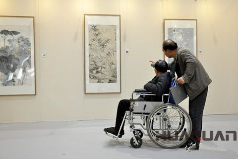 在郭莽園作品展展區,郭莽園的兒子郭青和工作人員正在拆《擊球圖》,其余畫作已經打包完畢。郭青告訴記者,這是父親 次來參加中國畫節,通過參加中國畫節,認識了很多新朋友,還見到了很多老朋友,更見到了全國 大家的作品,不虛此行。而呂峰卻是眾多參展畫家中比較年輕的一位,他的作品得到了不少藝術家的好評,巨幅作品《紅高粱熟了醉滿天》別具特色,描繪的是東北黑土地上一穗穗熟透的紅高粱,引來幾只小鳥來覓食。呂峰告訴記者,他就是濰坊人。“濰坊是中國畫都,我從小在這里長大,對濰坊的畫家及其名畫耳熟能詳。從12歲時,我開始接觸繪畫,尤其對傳統的小寫意花鳥畫有著特殊的偏愛。”呂峰說,雖然他在大學里學的是油畫,但對國畫情有獨鐘,這次展出的也都是國畫。