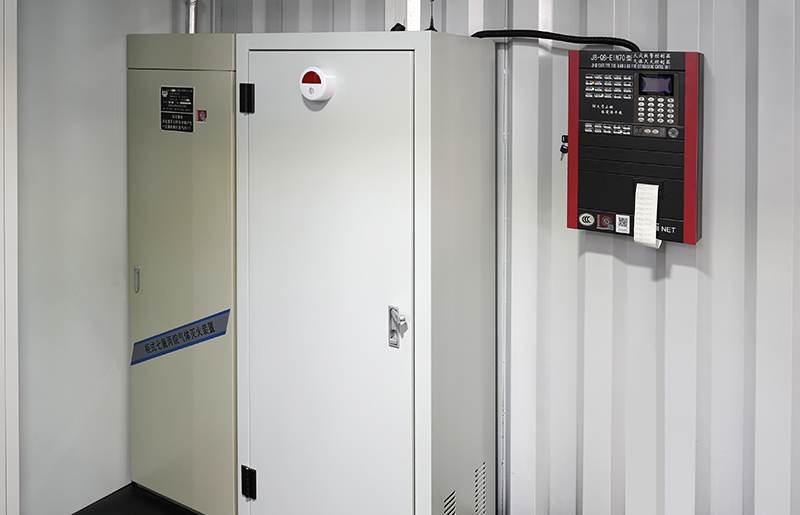 預制艙內部也配備了全套消防系統,例如煙霧報警器、氣溶膠滅火裝置等,可以自動感知火情、自動滅火,保障人員和設備的安全。
